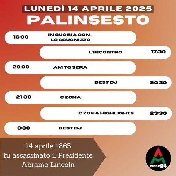 Palinsesto PALINSESTO – lunedì 14 aprile 2025 Pubblicato 1 anno fa il 14/04/2025 da Redazione AM-TV Share Tweet This post has already been read 148 times! Correlati Related Topics: Up Next PALINSESTO – martedì 15 aprile 2025 Don't Miss PALINSESTO – Domenica 13 aprile 2025 Continue Reading You may like
